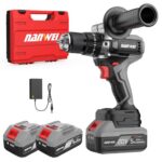 NANWEIのコードレス振動ドライバドリルは、最大トルク120Nmで、マキタバッテリー対応。充電式でブラシレスモーター搭載、無段変速と20+3段クラッチ調整が可能。高輝度LED照明付き。4.0Ah電池セット。