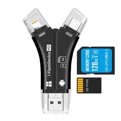 4in1 SDカードリーダー。スマホ、PC、iPhone、iPad、Androidに対応。USB2.0、MicroUSB、Type-C、Lightning仕様でデータの高速移行が可能。SD、SDHC、SDXC、microSD、microSDHC、microSDXC対応。