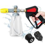 Akitsubaの高圧洗浄ショートガンは、5075PSI対応でKarcher Kシリーズに最適。省力化設計と圧力上昇、5段階マルチスプレー機能、1Lフォームキャノン付きで真鍮製M22-14mmクイックコネクトアダプターも付属。