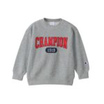 チャンピオンのキッズ長袖スウェットシャツ。綿100%のフレンチテリー素材で快適。グラフィックロゴとラバープリントが特徴。ボーイズカジュアルスタイルにぴったりのオックスフォードグレー。