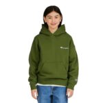 キッズ用長袖パーカー、綿100%のスウェットシャツ。ゆったりとしたルーズフィットデザインにスクリプトロゴの刺繍がポイント。スタイルと快適性を兼ね備えた一着。