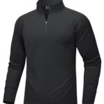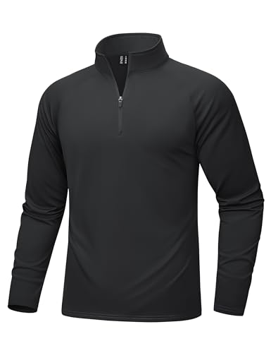 KEFITEVDのゴルフウェアはメンズ向けの冬用ハーフジップ長袖Tシャツ。裏起毛で暖かく、厚手のジョギングウェアやスポーツにも最適です。ハイネックデザインでインナーとしても使え、カジュアルに着こなせるブラックのロンティーです。サイズはL。