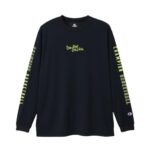 チャンピオンの長袖丸首シャツです。抗菌防臭加工で快適、速乾性あり、高通気でムレにくい。グラフィックロゴプリントが特徴的なメンズTシャツ。カラーはブラックXイエローグリーン。