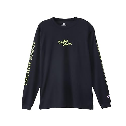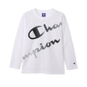 チャンピオンのキッズ向け長袖Tシャツ。抗菌防臭、速乾性、高通気性を備えたデザイン。グラフィックロゴプリントが特徴的で、バスケットボールに最適なアイテム。モデルCK-CB415-9YG-150。