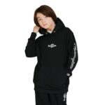 フード付きの長袖裏毛スウェットシャツ。速乾性とストレッチ性を兼ね備え、スクリプトロゴプリントが特徴。Tech Weave(R)素材使用で、バスケットボールに最適。