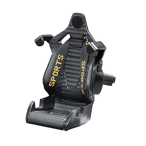 レカロシート風のスポーツデザインを採用したスマホホルダー。カーボン調でエアコンに取り付け可能。片手操作で安定性抜群の車載スマホホルダーです。(イエロー)