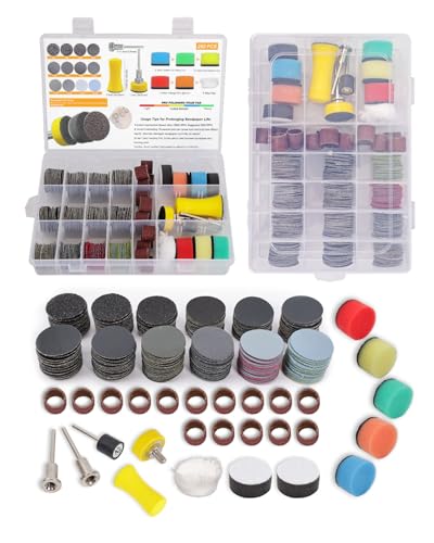 268枚耐水ペーパーセット、サンドディスクとドラム用、フックアンドループタイプ。60から10000の粒度まで、丸型12種類各20枚。金属や木材の鏡面仕上げに最適。