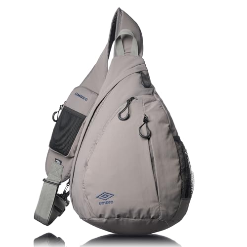 アンブロのボディバッグは、ワンショルダーで斜め掛け可能なデイパックです。柔らかい超軽量ナイロン素材を使用し、ロゴ刺繍が施されたスタイリッシュなデザイン。カラーはグレー。