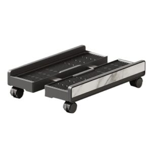 BESSTER CPUスタンドはキャスター付きで移動が簡単。耐荷重50kg、幅調整可能なデザインで、熱対策や落下防止も考慮されています。オフィスや自宅用に最適なメタル製スタンド。サイズ:43cm×20cm-26cm×6cm。