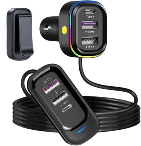 ZUKIDA 66W カーチャージャーは、6ポートの急速充電アダプターで、PD×2、USB×3、66W USB-A×1を搭載。7色のLEDアンビエントライトが特徴で、iPhoneやGalaxy、Pixelシリーズに対応。