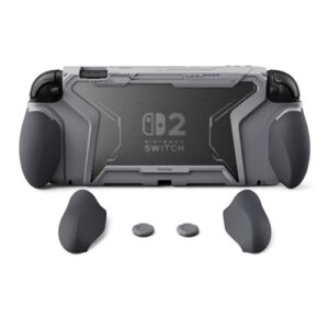 PlayVital BEYOND-GRIP Nintendo Switch 2(2025)対応 交換式グリップ付きTPU保護ケースカバー ドック対応 親指グリップキャップ付き 耐衝撃 人間工学デザイン【グレー】