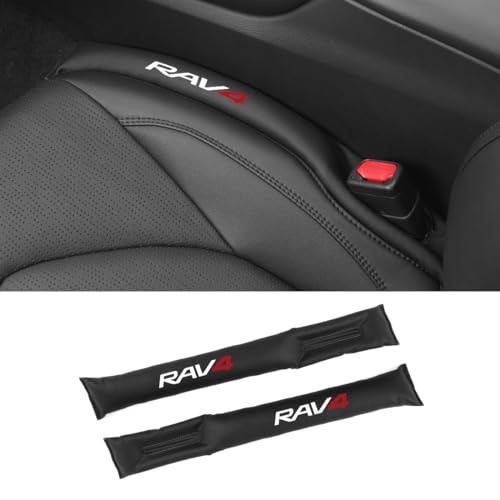 RAV4専用の隙間クッション。シートサイドにフィットし、小物の落下を防止。PUレザー製で高級感あり、運転席と助手席用の2本入り。新型RAV4及びRAV4 PHV XA50系全グレード対応、左右対称デザインでロゴ付き。