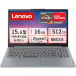 Lenovo IdeaPad Slim 3 Gen 8は、Ryzen 7 7730Uプロセッサ、メモリ16GB、SSD512GBを搭載。15.6型フルHD IPS液晶で、Windows 11をプリインストール。カラーはアークティックグレーです。
