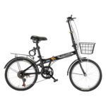 JIEBEIERの折りたたみ自転車は、20インチ・7段変速でリアキャリアと泥除けが装備。軽量な高炭素鋼フレームを使用し、男性・女性問わず初心者に最適。通勤・通学に最適な小径車。