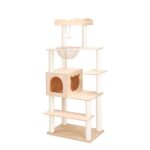 LULUCATキャットタワーは、高さ135cmで多頭飼いに最適。おしゃれなオランダベルベット使用、安定感あり。クッション入りベッドや爪とぎポール付きで、冬夏兼用。広々としたインテリア性の高いデザインで、シニア猫や子猫も安心。