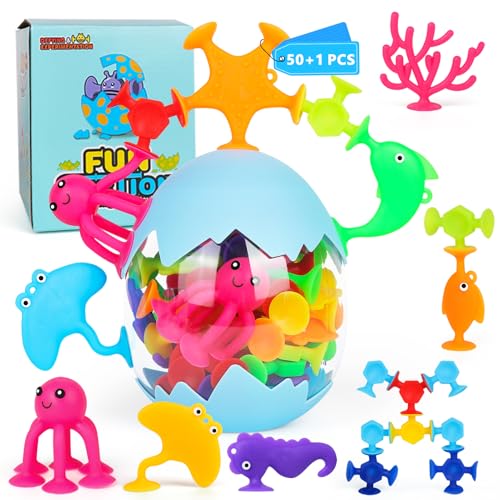 壁にも貼れる新感覚の知育ブロック、50個セット。お風呂で楽しめる吸盤おもちゃ。シリコン製で動物モチーフの積み木。男の子・女の子におすすめの誕生日プレゼントに最適!