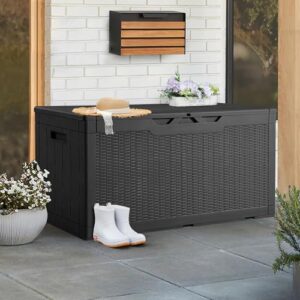 物置 収納庫 378L 大容量 倉庫 屋外収納庫 ベンチストッカー ベランダ収納 アウトドア収納 おしゃれ ブラック 幅123*奥行57*高さ62cm