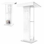 Easilywinlife 45.3 アクリル表彰台 書見台 教会用説教壇 二重棚付き モダンプレキシガラス説教壇 書見台 クロスデザイン 教室、会議、プレゼンテーション、結婚式用の製品情報