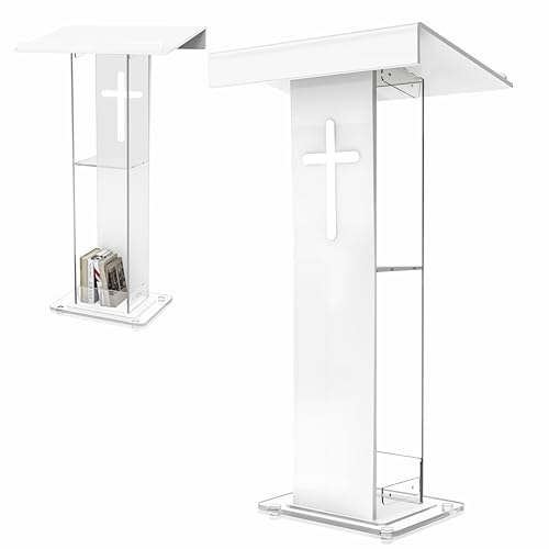 Easilywinlife 45.3 アクリル表彰台は、現代的なクロスデザインの説教壇です。二重棚付きで、教会や教室、結婚式のプレゼンテーションに最適です。