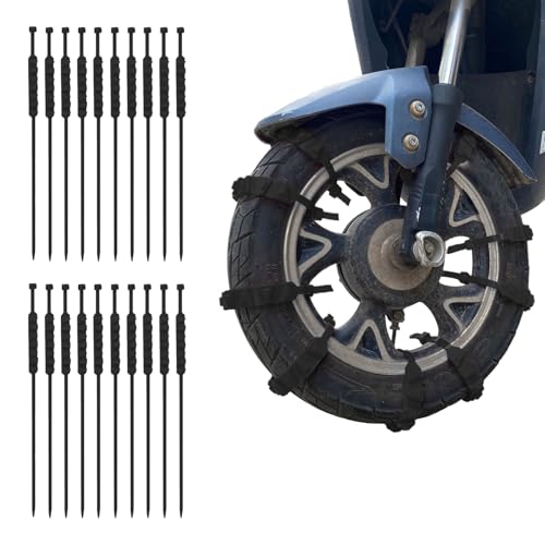 aninakoのオートバイ用タイヤチェーン20本セットは、非金属製で簡単に取り付け可能なスノーチェーンです。冬の凍結や雪道、泥道での滑り止めに最適。緊急脱出時にも役立ちます。