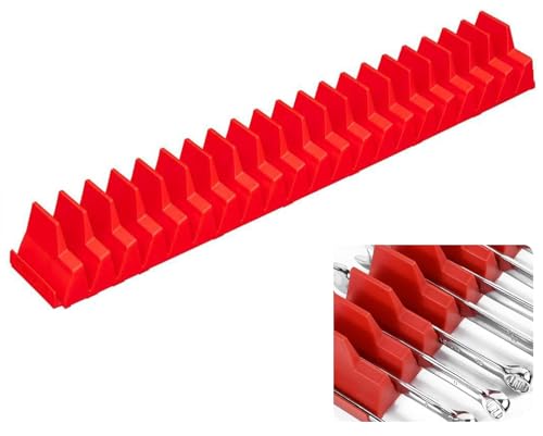 レンチ収納ラックは20個のレンチを収納可能で、取り付けが簡単なポータブルツール整理ラックです。丈夫で実用的、取り外しも可能なデザインで、赤色のスタイリッシュな外観が特徴です。