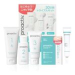 新プロアクティブトライアルキットとスキンケアパッチセット。ニキビケアに最適な洗顔料、化粧水、クリームを含む。メンズにも対応し、目立たず剥がれにくいパッチで昼夜使用可能。