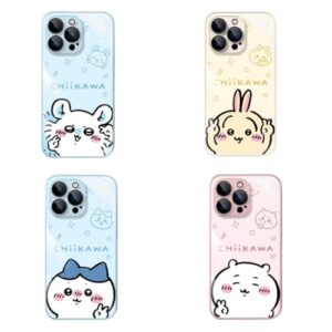 KEYTON ちいかわ スマホケース iphone17用ケース 強化ガラス 鏡面ガラス うさぎ 脱着簡単 全面保護 軽量 薄型 レンズ保護 アニメ 萌えグッズ 周辺 誕生日 プレゼント クリスマス ハロウィン 新年 17全機種対応 (iphone 17用,A)
