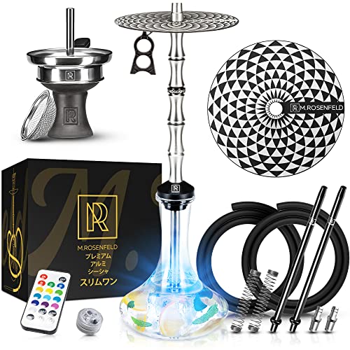 75cmのスリムシーシャ、ステンレス軸と耐熱ガラスベース。2ホース接続で快適、濃厚な煙を実現。静音排気、収納袋付き。全付属品完備、初心者向けの簡単組立。
