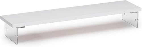 アクリル製の吊り下げ式高架ラック。デスクシェルフやモニタースタンドとして使用可能。シンプルなデザインで、耐荷重は15kg。キーボード収納もでき、サイズは60cm。ホワイトカラー。