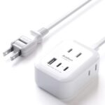 Addtamの延長コードは国内外で使用可能な電源タップ。USB付きで、3個AC口、2個Type-C、1個Type-Aを搭載。たこ足配線やテーブル用に便利で、スイングプラグ設計。急速充電非対応。