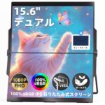 Ingnokの15.6インチデュアルモバイルモニターはFHD 1080p、IPSパネル、Type-C対応。折りたたみ式でVESA対応の自立スタンド付き。