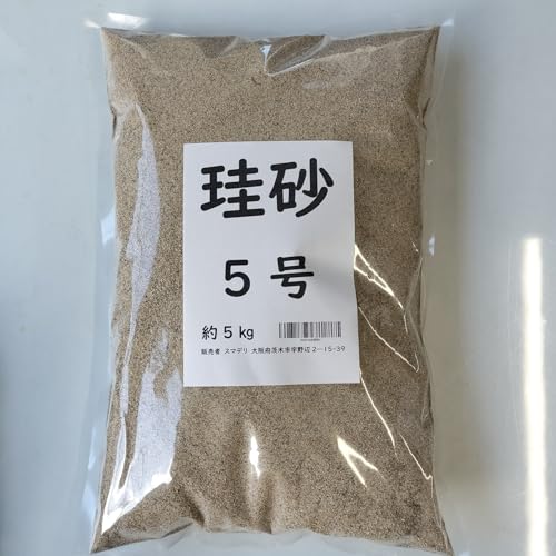 砂 5kg 珪砂 5号は、細目のさらさらした乾燥砂です。主に芝生の育成や土壌改良に使用され、良好な排水性を提供します。安全性が高く、ガーデニングや造園に適しています。