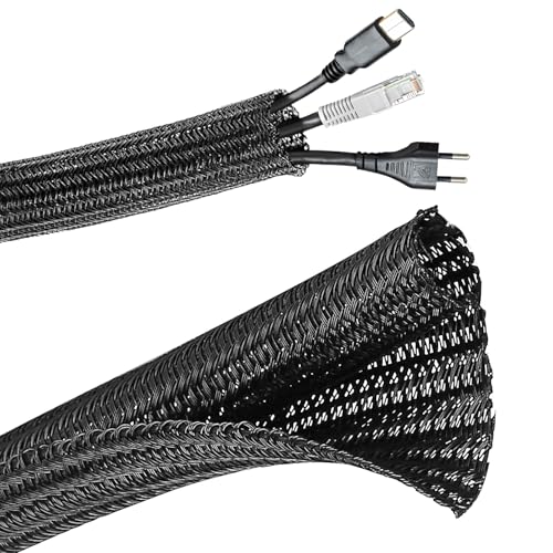 Mocamoroの編組ケーブル収納スリーブは、長さ2mから10m、直径13mmで、内径拡張可能。絶縁・防塵・耐高温・耐摩耗性あり。家庭やオフィスでのケーブル整理、動物の噛み込み対策に最適。