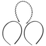 ChasCoCoの波型カチューシャ3個セット。くし付きで髪留めに便利。男女兼用のブラックで、おしゃれなヘアアクセサリーとして最適です。