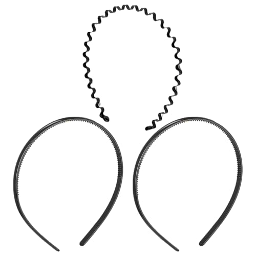 ChasCoCoカチューシャ3個セット。波型デザインで、くし付きヘッドバンド。髪留めとしてメンズ・レディース兼用。ブラックのスタイリッシュなヘアアクセサリ。