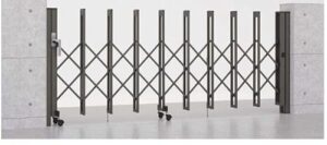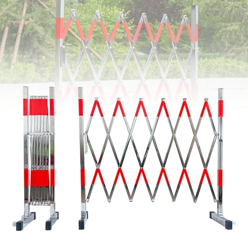 MBBTAGのステンレス鋼製アコーディオンフェンス。便利な収納、キャスター付きで可動。外部侵入防止、工事や駐車場管理に最適。サイズ120x250cm。