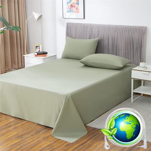 接地フラットシーツ、オーガニックコットン製、16.3フィートのアースコード付き。EMF保護に優れ、導電性マットでより良い睡眠をサポート。家庭用品ギフトにも最適です。色: グリーン、サイズ: ツイン。