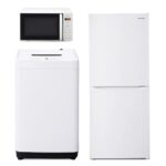 アイリスオーヤマの新生活セットは、洗濯機6kg、冷蔵庫142L、レンジ17Lが含まれた家電3点セットです。どれも白色で、シンプルでスタイリッシュなデザインが特徴。新生活を快適にサポートします。