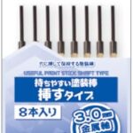 ホビーベース プレミアムパーツコレクションの持ちやすい塗装棒は、挿すタイプで3.0mm軸の8本入。ホビー用の塗装作業に最適な道具です。手にフィットし、安定した塗装をサポートします。