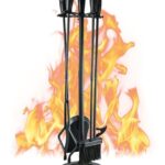 暖炉ツールセット5個(31.5インチ)で、屋内外で使える大型暖炉アクセサリー。ポーカー、シャベル、トング、ブラシが含まれ、スタンド付きで整理整頓も簡単。
