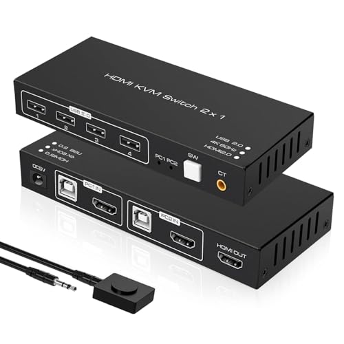 HDMI USB切替器。2台のPCから1台のモニターへ4K 60Hz映像出力。USBは2入力4出力対応でキーボード、マウス、プリンターを共有可能。