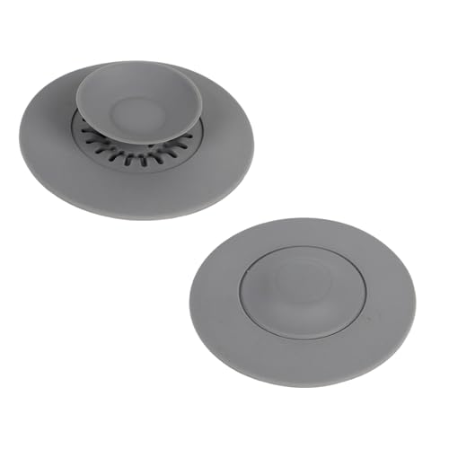 ユニバーサル排水プラグ2個パック。シリコン製でフレキシブル、直径4.25インチ。ストレーナー機能付きで、シンクやキッチンシンクに最適です。