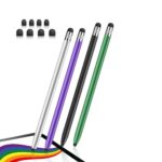 デュアルパーパススタイラスペン4本セット。8ラウンドシリコンチップ搭載で、ユニバーサル静電容量式タッチスクリーン対応。色はブラック、シルバー、パープル、ダークグリーンをラインナップ。