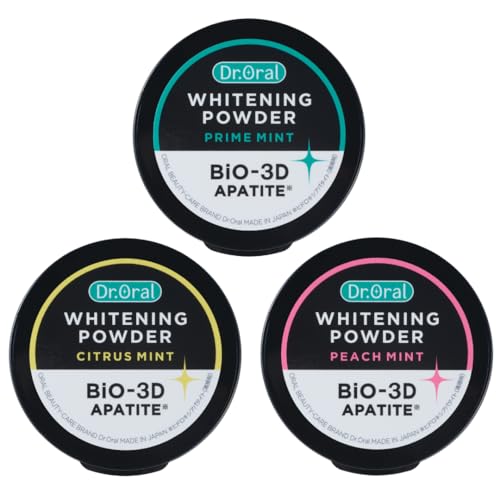 ドクターオーラルのホワイトニングパウダー3種アソートセットは、プライムミント、シトラスミント、ピーチミントの3種類が含まれています。日本製で、徹底美白を目指し、バイオ3Dアパタイトと卵殻アパタイトを配合しています。