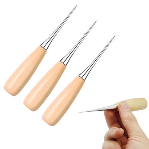 千枚通し 目打ち 手芸 3点セット 木製ハンドル レザークラフト 革工具セット 革パンチングツール 穴あけ 縫製裁縫道具 手縫い レザーツール DIY 手作り 家庭 初心者用の高価買取