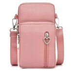 Honesty Mouthスマホポーチは、かわいいハート形デザインのミニショルダーバッグです。斜めがけ可能で、防水仕様。女性向けのパステルピンク色で、アームポーチとしても使えます。