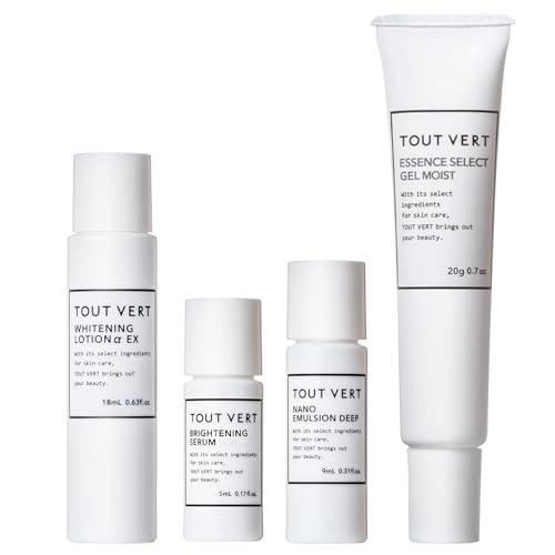 トゥヴェール ホワイトニングトライアルセットは約10日分の化粧水、美容液、乳液、オールインワンゲルが含まれ、ビタミンC誘導体やセラミドを配合。美白、シミ対策、乾燥から保湿までお試しできる旅行用セットです。
