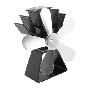 Creacom 5枚羽根の暖炉用ファン、台形ベース、熱発電ストーブファン、石油ストーブ、薪ストーブ用熱電サーマルファン (銀)