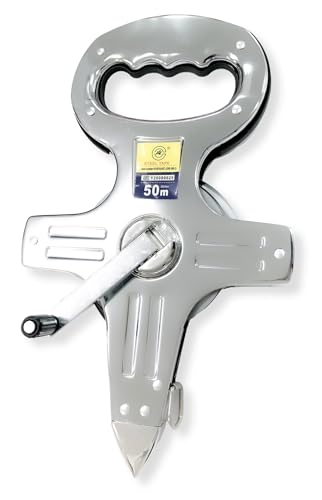 E-FINDS メジャーは50mのオープンリール巻尺で、手回し式の合金鋼製。大工や建設作業に最適で、正確な計測が可能。頑丈な設計でフィールドでの使用にも対応しています。