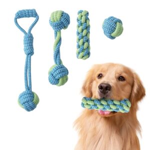 JOPOY 4パックの子犬用ロープおもちゃ 犬ロープおもちゃ 犬おもちゃ 犬用玩具 噛むおもちゃ ペット用 コットン ストレス解消 丈夫 耐久性 清潔 歯磨き 小/中型犬に適用 (4PACK, スポーツ)